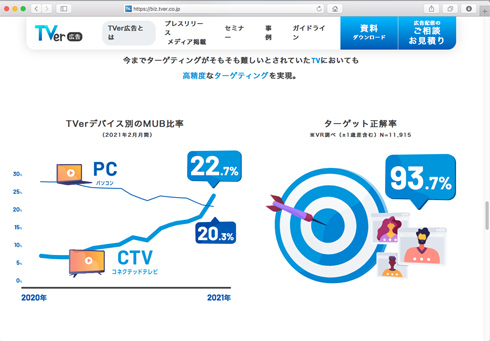 「広告業界ではサードパーティーCookieやIDFA(Appleが端末にランダムに割り当てるID)取得のオプトイン化など、トラッキング情報に関する規制強化が課題になっている。しかしTVerは潤沢なファーストパーティーデータを活用できるのが強みの1つ」という。