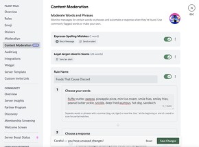 モデレーターが事前に指定したワードをスキャンし、投稿前に自動でブロックできる。悪質な場合、モデレーターが許可するまでチャットやボイスチャットを禁止することもできる。
