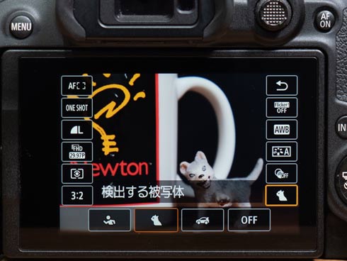 被写体検出は人物優先の他、動物(犬や猫や鳥)優先、乗り物優先(モータースポーツ系)から選択できる。