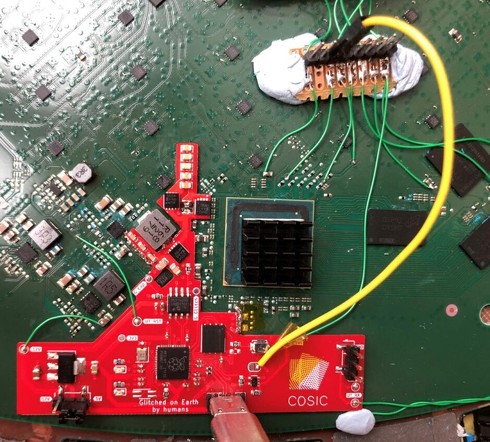 Starlinkの基板に取り付けたModchipによって、Starlink User Terminal(Starlink UT)へのFault Injection攻撃(プロセッサの電気入力を瞬間的に改ざんする攻撃)が行える。