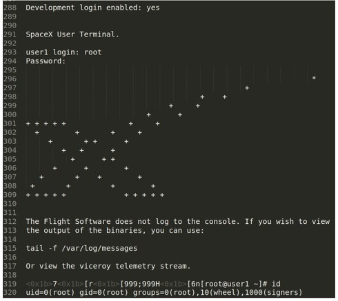 これにより、本来ロックがかけられているシステムの権限を得て、侵入することができる。Starlink UTは修復不可能な状態に陥り、攻撃者は任意のコードが実行可能になるという。ルート化したStarlink UTを通じて送信されたプレビューをLennert Wouters氏がTwitterアカウントで投稿している。