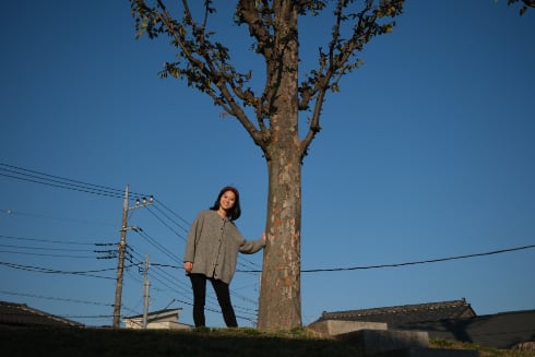 古墳の墳頂に立っている姿を狙ってみた。レンズは30mm F2.8(30mm 1/3500秒 F2.8 ISO125)