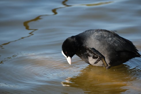 70-300mm F4-5.6を使い、池にいたオオバンを被写体検出AFで撮影。鳥の瞳をきっちり捕まえてくれた(70-300mm 300mm 1/450秒 F5.6 -1/3 ISO200)