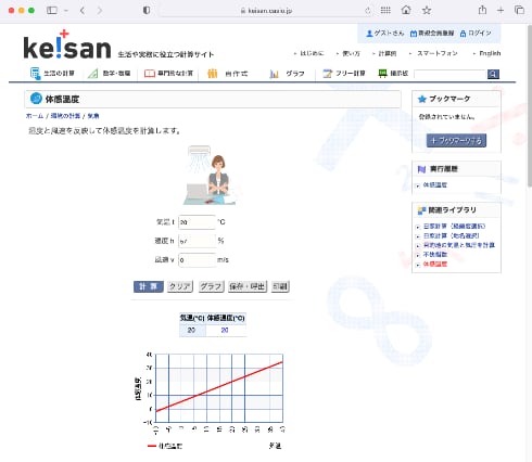 室温20度の時、例えば湿度30%では体感温度は18.8℃と低めです。人によっては肌寒いと感じるかもしれません。体感温度も20℃にするには湿度を57%まで上げる必要がありました。人が快適に感じる湿度は40〜60%といわれているのでちょうどいいと思います。