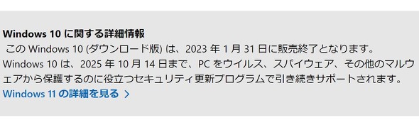 この表示には「Windows 11の詳細を見る」というリンクが付いており、ダウンロード購入するのであればWindows 11を推奨するということのようだ。