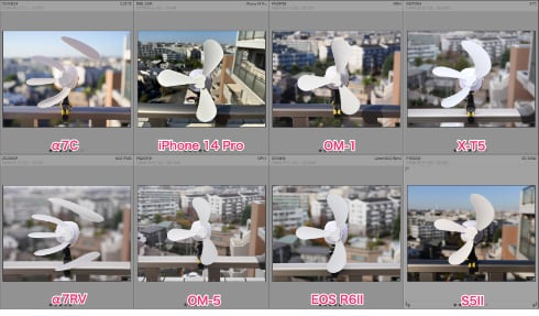 積層型センサーのiPhone 14 ProとOM-1はやはり優秀で、意外にα7RVの歪みは大きい。α7RVの歪みが大きいのは画素数が多いのも関係してるだろう。ほんとはα1やZ 9などでもやってみたいのだが、条件を合わせるための方法を統一したのが最近のことなのでご勘弁を。