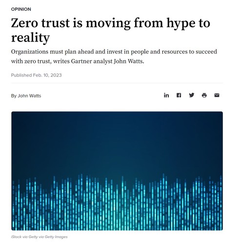 今、ゼロトラストは誇大宣伝から現実へと移行しつつあるとGartnerは言う。Cloud Security Allianceが22年に行った調査では、調査対象とした組織の94%がゼロトラスト戦略を導入しているか、導入の途上にあると答え、77%は今後1年で投資を増やすと回答した。