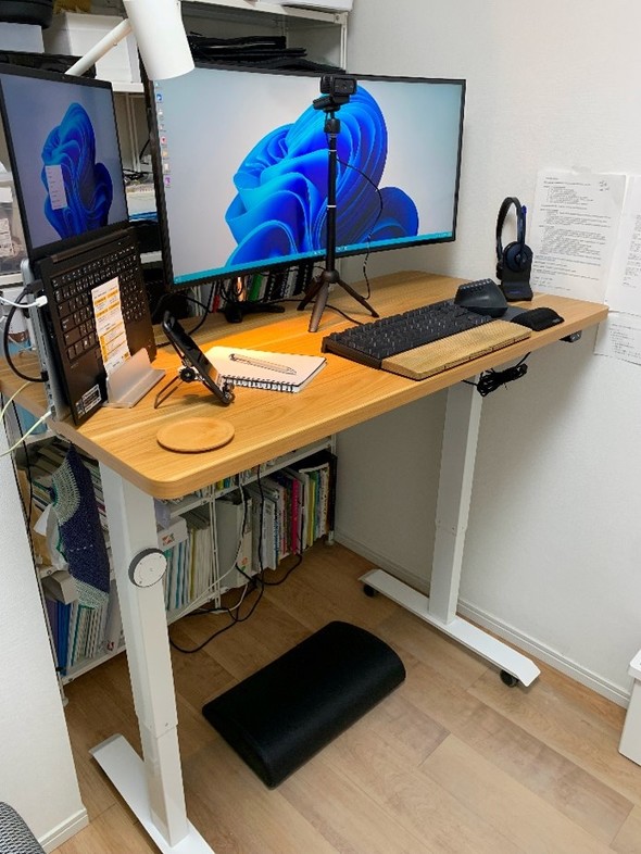 採用面接も多く行うのですが、起立して面接することで、適度な緊張感と躍動感が生まれるので、面接の際には必ず立つようにしています。また、自宅で家族と生活しているので、生活音を除いてくれるノイズリダクションマイク機能を備えたヘッドセットも必須アイテムです。