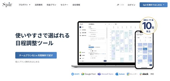 Spir社はコンサルティングファーム、ユーザーベース社を経た大山晋輔氏が起業したスタートアップである。Spirは20年10月にβ版、21年5月に正式版のローンチを経て、21年7月にはユーザー数は1万人を突破。個人プランは無料で利用できるが、22年8月からはチームメンバーと連携した日程調整をスムーズにする法人プランを提供している。現在では導入社数は150社を突破し、個人版を含めた登録ユーザー数は10万人を超える急成長中のツールだ。