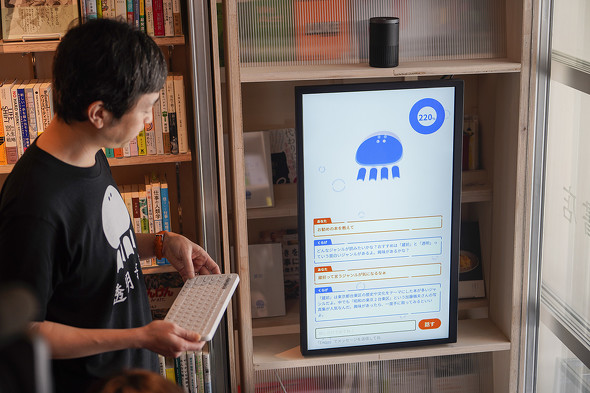 オペレーションは基本的に店長1人のみだが、透明書店のマスコットでもあるクラゲ姿に扮したChatGPTが“副店長”として存在する。接客もでき、在庫DBと照合しながら来店客におすすめの書籍を案内してくれる。クラゲには声で入力することもできるが、マウスとキーボードもあるので無言で会話もできる。