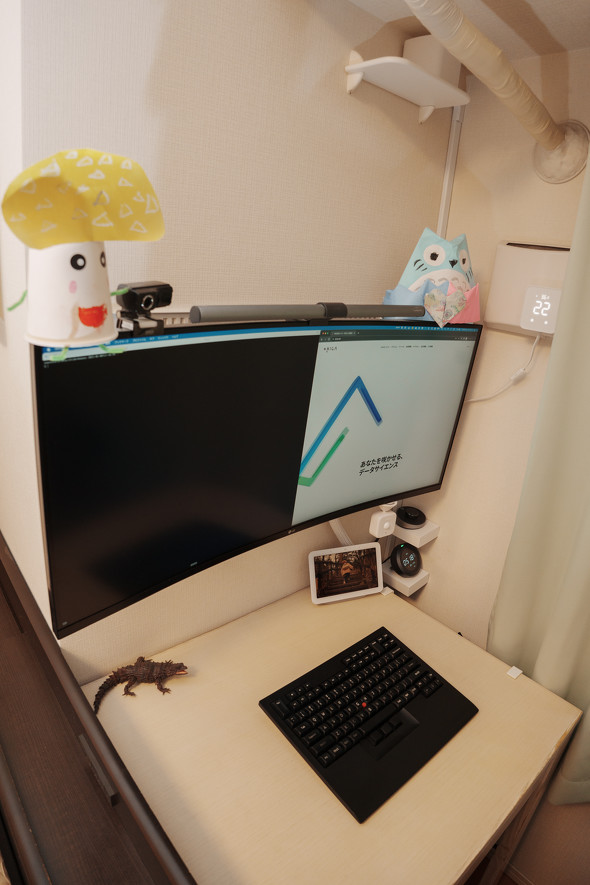 最近SwitchBotの人感センサーを使い部屋の照明操作を自動化して、席に座れば電気が点くようにしてみましたが、なかなか良い感じです。あとはGoogle Nest Hubで子供の写真をスライドショーしたり、子供がくれた制作物を飾ったりしてパパっぽさを演出しています。
