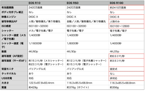 簡単にいえばR100の中身は一世代前のミラーレス一眼。