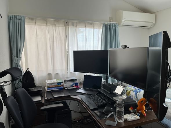 AI開発というPCを長時間使う業務をしているため、PC周りの環境を重視しています。ディスプレイは最低でも3つは欲しい派です。