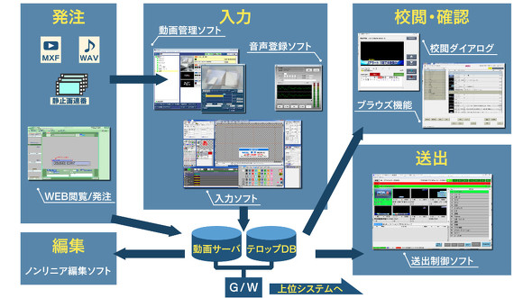 文字情報は番組ディレクターがCGセンターへ原稿とともに発注する。CGセンターでは原稿を元に文字情報をデザインし、テロップ専用データベースに登録する。それを校閲・確認したのち、送出システムに登録され、自動あるいは手動で送出される事になる。