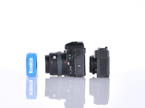 コニカ創業者の杉浦六三郎氏が1873年に写真材料の販売を始めてから150周年となることを記念して、同社からライセンスを得て1975年〜1992年の間に発売した3機種をミニチュア化した。