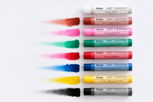 「どちらかといえばオイルパステル寄りではあるんですけど、『アートクレヨン』はクレヨン同様、ガラスやプラスチックにも描けます。オイルパステルだと油分が多くて滑っちゃうので、なかなか色が乗らないんです。なので、紙以外への描画や表現が楽しめます。つるつるしたところに描いたものなら、ティッシュで擦れば結構しっかり消えますから、紙に描いて失敗するの嫌だなあとか、そういう時にもストレスフリーな画材として使ってもらえたらと思います」