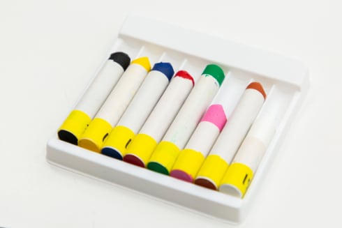 「実は形状が円柱状になっているのも、パステルの形なんです。クレヨンは先端が円錐状になっているのが普通なんですよ。デザイン的な意味での区別ということもあるんですけど、もともとオイルパステルは柔らかめで広く面を塗るのに適しているから、形状も円柱や四角柱になっていて、対してクレヨンは硬めで、線を描くのに適しているから先が尖ってるんです」。それでも商品名がクレヨンになったのは、名前としてオイルパステルよりクレヨンの方が浸透していることもあるし、柴崎先生がクレヨンを推したということなどで決まったのだそうだ。