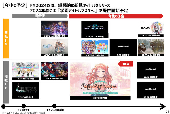 ゲーム事業も好調で、営業利益は2Q単体で182億円と前年同期比で19.8%増に。24年2月に販売開始したアクションRPG「GRANBLUE FANTASY: Relink」(PlayStation 4/5、PC)は、発売から11日で100万本を販売し、うち8割が海外からの購入だったという。「ウマ娘 プリティダービー」も5月に劇場版を控えており、好調の周年イベントとクロスメディア展開により、長寿命IPを目指すという。