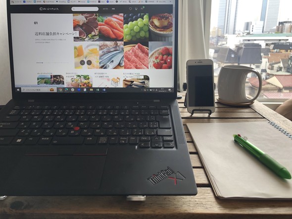 デスクは自宅のものです。トラストバンクではふるさとチョイスで培ったナレッジやアセットを活用して同サービスと親和性が高いEC事業「めいぶつチョイス」を立ち上げました。