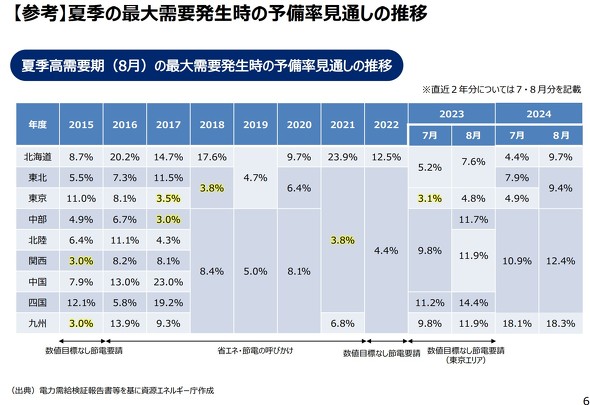 経済産業省は6月4日、2024年の夏は節電要請を行わないと発表した。10年に一度の厳しい暑さを想定した電力需要があっても、安定供給に最低限必要な予備率3%を全エリアで確保できているため。