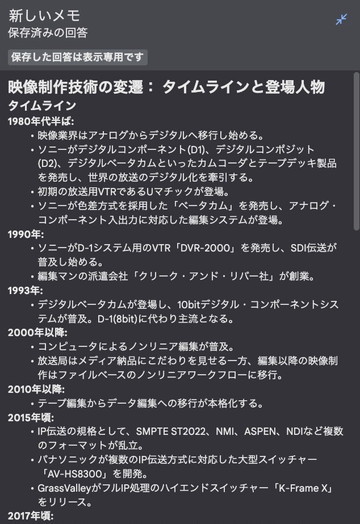 また、回答から作られたメモは、ユーザーが編集することができない。もし回答に修正を加えたいのであれば、新たに空のメモを作り、その中に回答をコピー&ペーストすれば内容を修正できる他、純粋に自分用のメモとしても活用できる。