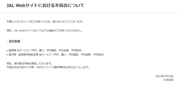 JALのWebサイトで障害 国際線の全サービスが利用できず、国内線にも影響【復旧済み】