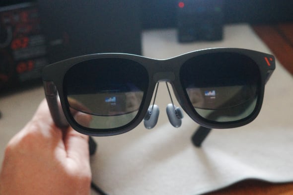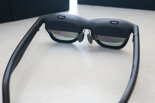 メガネ型ですから、頭に固定するのは挟み込むツルと鼻だけです。中でも重要なのが鼻当てです。なぜなら、ここが顔にマッチしていないと、画面そのものがまともに見えなくなってしまうからです。今回、同梱されていた4種類の鼻当てを全部試してみましたが、私の顔に合ったのは4つのうちの1つでした。