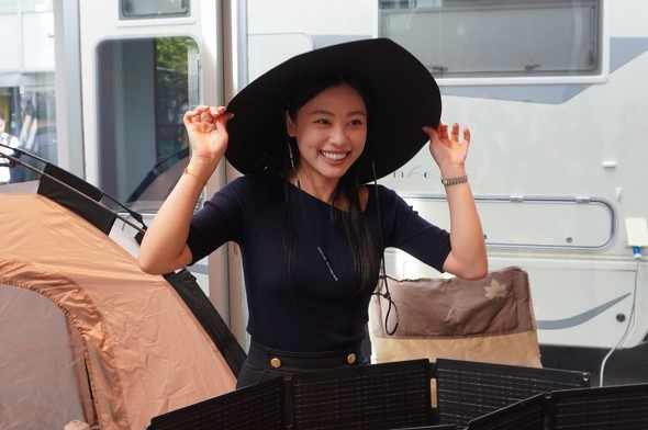 またユニークな製品として、麦わら帽子型の「Solar Panel Hat」も11月頃に投入予定だ。12W出力とちょっと小さいが、作業中にも無駄なく発電できることで、スマホやモバイルバッテリーはもちろん、ネック式ファンやクーラーなどと組み合わせると、長時間の利用が可能になるだろう。帽子サイズとしてもMとLの2種類で展開するという。被っていなくても、日の当たる窓際にちょっとかけておくだけで発電するのは魅力である。