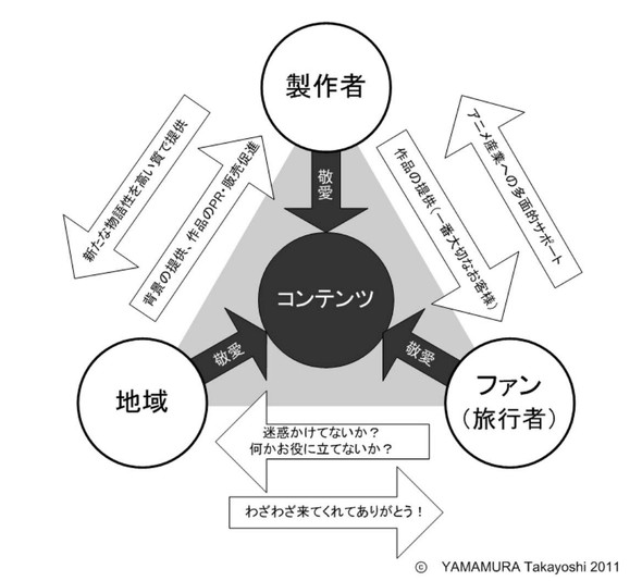 ここで少し解説を加えておきたい。今回のマケインのように、アニメの舞台やモデルとなった地域で従来とは異なる観光(コンテンツツーリズム)が盛んになることは珍しくなくなった。