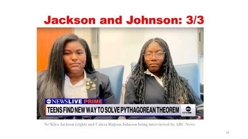 2023年、米国の高校生ネキヤ・ジャクソンさんとカルセア・ジョンソンさんは、地元の高校のコンテストで驚くべき成果を披露した。それは、三角関数を用いてピタゴラスの定理を証明するという方法の発見であった。