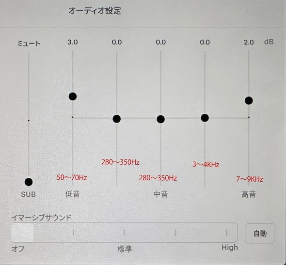 その結果、各スライダーは次のような周波数帯を調整可能なことが分かりました。