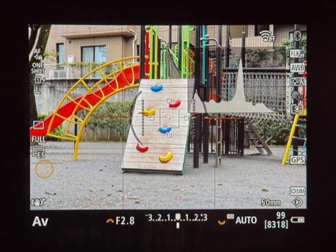 ファインダー内はこんな感じ(ファインダー内をスマホで撮っているので周辺がちょっと荒れてるのは気にしにでください)。