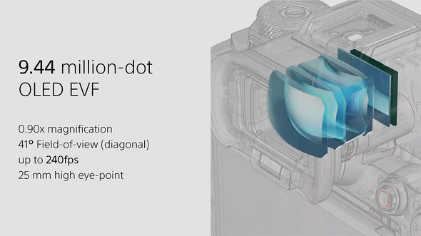 トップカバーからフロントカバー、内部フレーム、リヤカバーに至るまでマグネシウム合金を採用。マウントは6本のネジで固定し剛性を向上。グリップはα1よりホールド性を高めている。モニターは、チルトとバリアングルが使える「4軸マルチアングル液晶モニター」に刷新された。EVFは約944万ドットのOLEDパネルで、ファインダー倍率0.90倍、約41度の視野角などを実現した。表示ラグを低減した他、フレームレートを240fps(静止画時)まで選択できる。