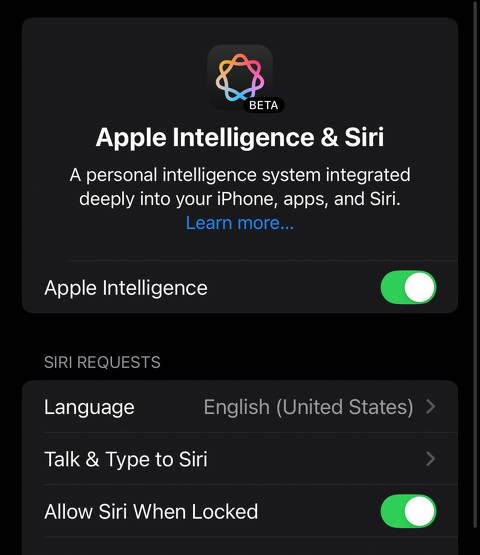 Apple Intelligenceを使うにはいくつかの条件がある。動作対象機種については、あえて後述する。その上でまず最新のOSにアップデートし「言語」の設定を「English」にする。OSの設定内に増えた「Apple Intelligence & Siri」という項目から登録し、しばらくすると使えるようになる。現状は、日本語設定のままでは利用できない。