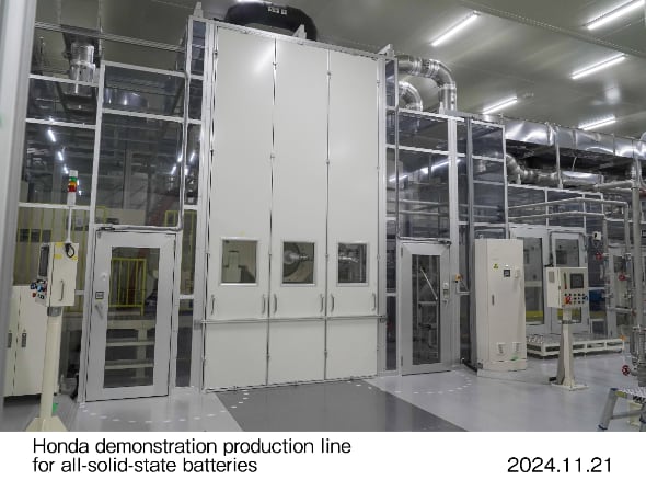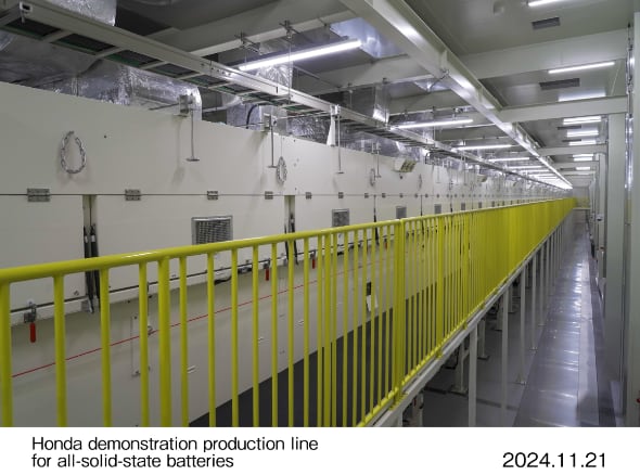 Hondaは11月21日、栃木県さくら市にある本田技術研究所の敷地内に設けた全固体電池のパイロットラインを公開した。25年1月に稼働開始し、量産プロセスの確立に向けた技術検証を行う。