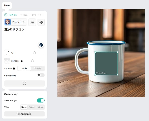 マグカップ内部の画像が生成されたら、サイズを変更できます。