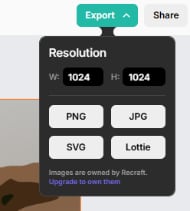 ベクター化が終了すると、ExportできるフォーマットがさっきまではPNGとJPGだけだったのに、そこにSVGとLottie(ベクターアニメーションのファイル形式)も加わっています。はい、ここから他のアプリで展開するのもやりたい放題ですね。