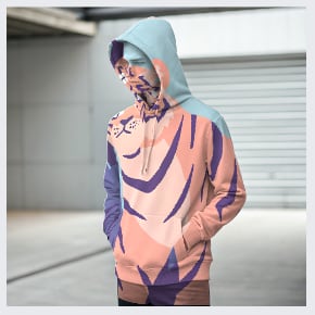 なお、同じような感じでパーカーのモックアップをやってみた例がこちらです。1つは大げさにやって顔まで塗られてしまっていますが、これでRecraftの挙動については分かりやすいのではないかと思います