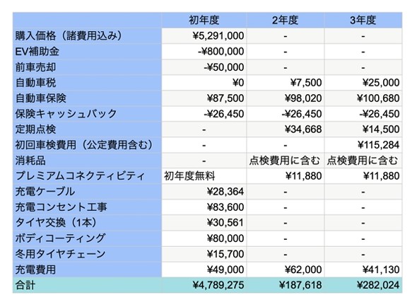 下の表は、納車時から2024年9月末時点までの総コストです。この他にも、ルーフガラスの日よけシュードやペット用のシートカバーなど個別事例的な出費はありますが、それは除外しています。