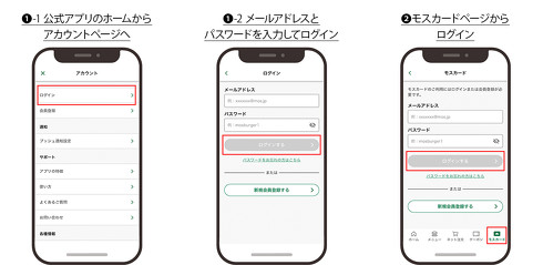 モスバーガーの新規会員登録や会員情報の変更、退会もアプリ上ではできなくなり、公式サイトでの手続きとなる。また、プリペイドカード「モスカード」のモバイル版の新規発行もアプリ上ではできなくなっている。代わりに店舗でモスカードを購入し、公式サイトから登録すれば、店舗での支払いの際、アプリ上でモスカードを利用できるようになるという。
