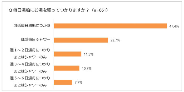 LIXILが2022年に行った「あなたのお風呂事情 調査」の結果。2割はシャワーのみで、さらに1割は週1回しか浴槽に浸かっていない。しかし同時に7割以上が時間や気持ちに余裕があれば毎日湯船に浸かりたいと答えたという。この調査結果がbathtopeにつながったbathtopeは、住宅空間の有効活用や節水などのメリットもあるが、「シャワーをメインにしつつ、浴槽にも入れる」という、LIXILからの新しい浴室の提案だ。そしてマンションなどをリフォームするとき、この「新しい浴室」を通して、自分がどのような浴室を求めているのか、改めて考えさせてくれる製品なのだ。