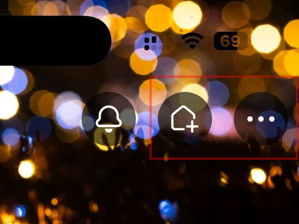 ホームに表示したくないコミュニティのトップページ右上に表示されているアイコンのうち、中央と右にある2つのボタンからアクセスする。中央がポストのホーム表示切り替えボタン、右がメニューボタンで、こちらからでも同様のことができる