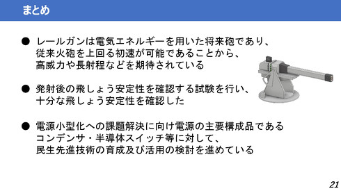 「レールガン」研究の近況、装備庁が発表 “弾丸の安定した飛翔”に成功 電源の小型化も検討中