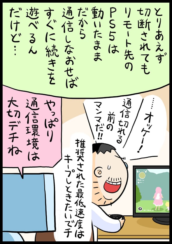 実家のPS4で自宅のPS5をリモートプレイしたら“条件付き”ながらも意外と遊べた件 ゲーム好きマンガ家の帰省スタイルサダタローのゆるっとマンガ劇場(6/7 ページ)