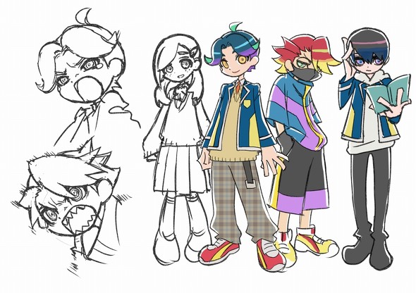それを見ていて「これくらいグラフィカルな方が動かした時も面白い。攻めていこう」と感じましたし、ストーリーもそこに当てていきました。そして、村井さんの意見も取り入れながら、工藤さんがその場でキャラクターを描いていき、個性的なキャラクターが誕生しました。脚本もキャラクターに合わせて書かれたんです。あのデザインだからこそ生まれたストーリーを、村井さんが作り上げてくれたと思っています。