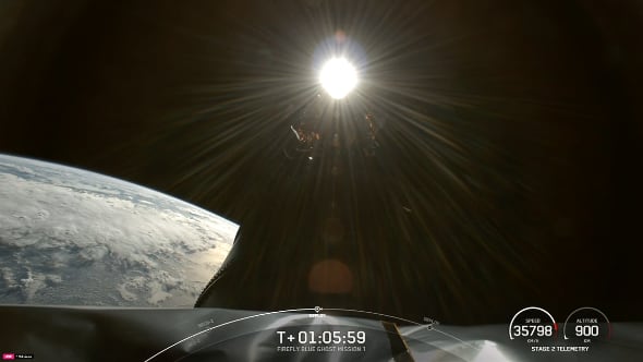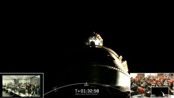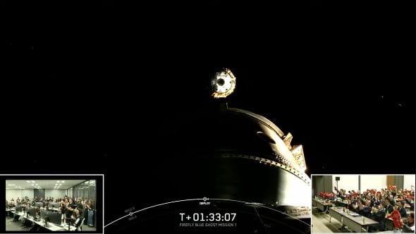 Falcon 9は順調に飛行し、打ち上げから1時間5分後にまずFireflyの月着陸船「Blue Ghost」を切り離し、その30分後にispaceの「RESILIENCEランダー」の分離に成功した。月への到着はBlue Ghostのほうが早い。