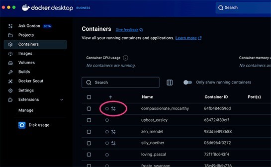下記は、コンテナの起動に失敗した場面をGordonが検知、赤丸の場所にGordonのマークが表示され、ここからユーザーはGordonを起動してアドバイスなどを得ることができるとされています。