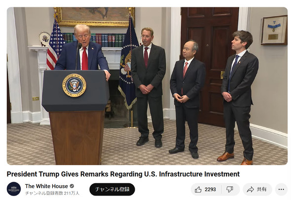 この会見には、OpenAIのサム・アルトマンCEO、ソフトバンクGの孫正義会長兼社長と並んでOracleのラリー・エリソン会長兼CTOも参加していた。