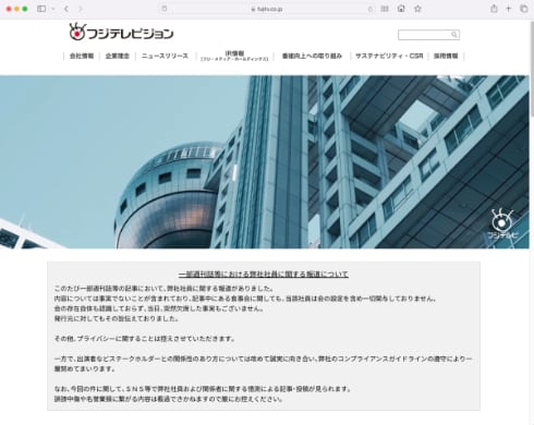 フジテレビの会見は「背信行為」「使命や責任を放棄」──メディア労組の連合会が声明