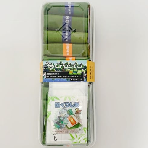 地元・石川県の郷土料理「笹寿司」を販売する芝寿し(石川県金沢市)とコラボした。紅鮭、鯛、鯖の笹寿司10個入りセットに、オリジナルデザインの帯封や限定キャラクター「笹くりしあ」のオリジナルステッカーを同梱する。